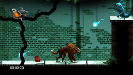 Become Selena, loving mother, devoted wife and -- powerful werewolf. Take revenge on the monsters that have slain your husband and stolen your child, in this love letter to classic platformers. Seamlessly transform from human to werewolf in light of the moon, as you shoot, slash and smash your way through over 30 enemies and face off against five brutal boss arenas. Blood of the Werewolf takes players on a ruthless journey of revenge through fifteen levels of white knuckle platforming action while taking on hordes of creaturesand five iconic monster-movie bosses; Creature, Hyde, Dracula, Mummy, Frankenstein. Selena has access to upgradeable weapons in human form and unlockable wolf powers when transformed. Additional modes like speed run and score rush will test your reflexes and memory, with online leaderboards to keep track of yourself, and friends. Keep your wits about you, Blood of the Werewolf will test your limits and offer a challenge you haven't seen since the golden age of games.