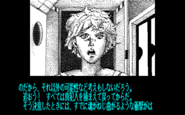 Chátty is the third entry in System Sacom's Novel Ware series. It was meant to be the second title, but delays during development pushed its release date past that of the would-be third game. Its story is set in the future and involves a man who was framed for a crime he did not commit. In attempt to clear his name, the protagonist discovers a device that allows interdimensional travel, and ventures into a parallel dimension in search for answers. Unlike the previous Novel Ware game, Chátty is a more traditional Japanese-style adventure, with fewer and shorter conversations and text descriptions. Interaction with the environment and navigation are performed by selecting verb commands and combining them with objects from a menu list. There are no real puzzles, but it is possible to pick up objects, use them, and examine them in an inventory.