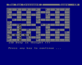Sun Crosswords is a Puzzle game, developed and published by CDS, which was released in Europe in 1991.