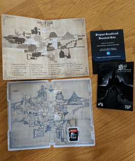 A physical version of Salt and Sanctuary released for the Nintendo Switch. It includes a Nintendo Switch game cartridge, a full manual, a double-sided mini poster featuring the Sodden Knight on one side and a hand-drawn world map of the island on the other, and a download code for the Salt and Sanctuary original soundtrack.