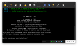 MUME, Multi-Users in Middle-earth, is a DikuMUD based upon J.R.R. Tolkien’s Middle-earth that has been continuously running, enhanced, and remastered since fall of 1991. In MUME, players are encouraged to role-play as they live in this meticulously crafted world exploring the conflict leading into the War of the Ring during the late Third Age. The action takes place nearly 100 years prior to The Hobbit but long after the loss of the One Ring by Sauron. The key to Erebor has just been found by Gandalf in Dol Guldur and all the epic tales narrated in The Lord of the Rings may take place. MUME covers 28,000+ original rooms from the mighty Dwarven Halls beyond the Gulf of the Lhûn in the West to the Mountains of Mirkwood in the East, and from the ruins of Fornost Erain in the North to the fortress of Isengard in the South. Players can choose among several different races, each with some unique characteristics. The races are separated into three striving factions. Dwarves, Elves, Half-Elves, Hobbits and Men — among them are the shapeshifting Beornings — are eternally at war with the Orcs, Trolls and Black Númenóreans. Moreover, the orkish tribe of the Zaugurz is trying to expand its territory at the expense of the Tarkhnarb Orcs of Goblin Gate. Most of this conflict takes place to the east and south of the town of Bree, but rare raids or solitary agents of the Red Eye have made it to as far west as the Dwarven homes in the Blue Mountains.
