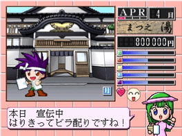 In Simple 1500 series vol. 101 the Sentou the player takes the role of a young boy in charge of a bathhouse. Every week the player choose what duties will the boy do (cleaning the baths, rest, repair the ceiling, put more fire to the kettle, etc.) Depending on the jobs, the boy starts will increase or decrease.