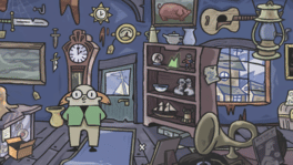 A cartoon point-and-click adventure about a cursed painting and a ghost cat.