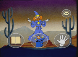 Pecos Bill is an reading/writing educational game related to the stories of Pecos Bill. It contains four educational mini-games: Nimble - The player must select homonyms, antonyms, and synonyms from a list of words. Roll 'Em - The player must select the term that means the same as the highlighted selection in a sentence. Willy Nilly - The player must navigate Pecos Bill through a small maze, while answering true/false questions. Word Catcher - The player must complete sentences related to Pecos Bill before the correct word scrolls off the screen.