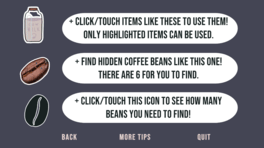Pour yourself a cup, take your time & enjoy. Choose a cup you'd like to have your coffee in & add in whatever else you like. This is a cozy point & click game, where you can go at your own pace - there is no end goal, make as much coffee as you like! There are also 6 hidden little coffee beans for you to find in the kitchen. Remember, there's no place like home (whatever home might mean for you).