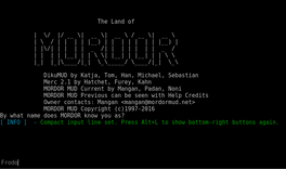Mordor is a MUD based on the works of J. R. R. Tolkien, especially The Lord of the Rings and The Hobbit. While playing the game, you can explore over 75 unique areas including: Isengard, Edoras, Midgewater, Fangorn, Shelob's Lair, Lothlorien, Rivendell, Lonely Mountain, Helms Deep, Minas Morgul, and many more. New areas are added regularly. Mordor's unique multi-class system, along with its remort classes, allows you to completely customize your character. Role-play as good or evil and engage in player vs. player combat by joining an alliance, such as the Eye of Sauron, the Hand of Saruman, the Haradrims, the Last Alliance, the Northern Rangers, and the White Council. Solo and mercenary classes are also available, along with an alliance dedicated to helping out new players -- the Guardians of Mordor. All alliances are ever evolving through the expansion of their halls and the addition of new alliance-specific equipment. We have a full time Quest Master and often offer Immortal quests.