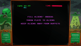 Rude aliens have arrived to sample Earth's legendary all-you-can-eat buffet, and they're sending a smorgasboarding party down to YOUR dining room. Can you assemble and deliver their plates of food before the aliens wreck the restaurant?