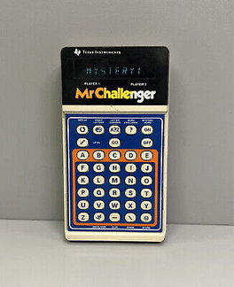 Mr. Challenger is a late-1970s Texas Instruments handheld electronic game featuring four word-based game modes focused on vocabulary and spelling challenges. It ships as a calculator-style unit and plays solo, emphasizing quick word recognition and anagram-like tasks.