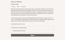 Write an archmage's autobiography in this 80-year 130,000-word interactive fiction! Play good or evil, man or woman, as you bring peace to the kingdom or take over the world with your sorcery. Brew potions, raise the dead, summon mythical beasts, control men's minds, and blast away your enemies.