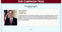 Do you have what it takes to win a Presidential Election? Select a year and a candidate to find out. You will answer questions about your platform and positions, and also about your campaign strategy. The answers will affect your popularity for better or worse, both nationally and in individual states. Walk the fine line between appealing to your base and winning a majority of the votes.