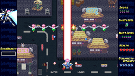 Take on six stages of vertical shooting mayhem full of looney pixel art characters and locales. Gamers who are tired of bullet hell and Compile-like shooters can finally rejoice.