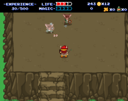 A good-old Zelda-like adventure game. You'll need to defeat monsters along the way of the outside world to find dungeons where quest items (or treasures) are kept safe by big monsters. Those relics are then used to grant passage to the evil Gordzak's lair, which you'll have to destroy in order to beat the game. To accomplish this you will need to upgrade your gear and your personal strength by leveling up and finding magic items.
