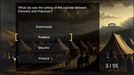 Explore the mythic tapestry of ancient Greece through immersive quiz-based gameplay. Test your knowledge of gods, heroes, and epics sagas in four distinct modes—including Speed Mode, with Steam Leaderboards. Contains 530 handcrafted questions, 160 AI-enhanced illustrations.