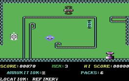 Tiger Tank is a top-down action game where players guide a tank through locations like forests and refineries, collecting radiation packs for ammo while avoiding enemies and obstacles. The game loops after the final stage.
