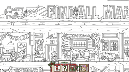 Explore the shops in the shopping center in the run-up to Christmas, find 270 different items and paint the black and white picture with colored paints.