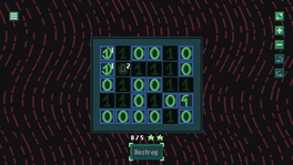 Logic puzzle game where you must destroy paths of 0-s from the board. Use logic to complete levels with optimal solutions.