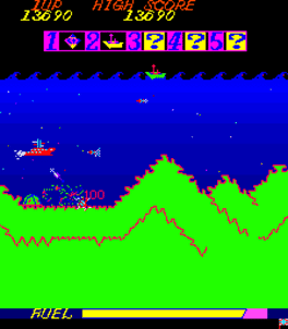 The player has to guide a submarine armed with torpedoes and missiles through five levels while fighting different underwater terrors. The game play is easy during the first five areas but it gets really tough at the later levels where the underwater landscape "grows" and there is not much space left for maneuvering the submarine. At the end of each area the boss-submarine appears and its firepower is not easy to overcome. US Billiards, the 800 Fathoms maker, released 10 different machines in our database under this trade name, starting in 1973. Other machines made by US Billiards during the time period 800 Fathoms was produced include Ab$cam, Variety, US Billiards, Video Pool, Survival, and Shark.