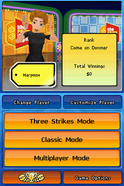 Based on the long-running game show The Price is Right, the 2010 edition allows players to hit all the highlights from the show - bidding on Contestant's Row, playing one of 30 pricing games, spinning the giant wheel, and hopefully participating in the Showcase. Single player has two modes. "Classic" simply takes you through a single episode of the show as a contestant. "Three Strikes" has you keep playing as a contestant until you lose at Contestant's Row three times. Win or lose at the Row, you'll still play a pricing game after, and try to rack up the most money before you get your three strikes. This release improves on the previous DS edition by lowering the audience background noise, with different audio sliders for sound and narration, and features improved animations.