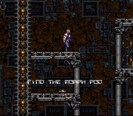 Metal Morph is a side-scrolling platformer. As the Metal Morph, you can jump, duck and shoot, as well as transform into an invulnerable liquid blob of metal. While as a blob, you can also travel through pipes to get to areas you couldn't normally. Power ups such as triple shots and homing missiles make battle easier for you. The game also has sections where you fly your spaceship to track down your stolen pods. In flight mode, you can move the ship up, down, left and right while shooting enemies and dodging their incoming shots. Power ups such as speed up (which makes the ship travel faster to its destination) and shields (which prevent instant death) can also be found.
