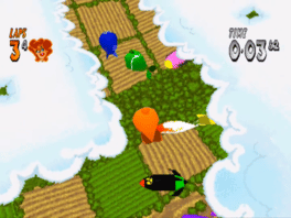 Dare Devil Derby 3D places you in a variety of races and includes 30 tracks through 10 different environments. There are a total of eight characters to play as, each with their own various traits. Single player modes of play are: grand prix, world series, championship, knockout, one-on-one, and speed trial. Each race has variations such as number of tracks, time limits, point systems, and number of computer opponents. Multi-player modes include: battle race, circuit race, battle comp, pro battle comp, circuit comp, and speed comp. Similar variations exist for multi-player modes as they do in the single player modes. One difference is that the view will zoom in and out in order to keep every player on the screen.