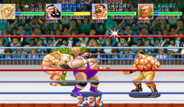 Slam Masters is an arcade conversion of Capcom's wrestling game of the same name. Ten wrestlers with different fighting styles and individual special attacks are available. They are controlled with three buttons; one for jumping, one for attacking and one for pinning. When close to your opponents, you can grab them to perform various moves ranging from ordinary attacks to body slams to throws. Since the action takes place in a ring, it is also possible to climb the turnbuckle or use the ropes to your advantage. You can also leave the ring for a limited amount of time to fight with different weapons that can be found outside the ring. Apart from a standard Single Match mode, the SNES version also features a Battle Royal mode for up to four players. This mode is not available in the Genesis version, which features a Death Match mode that can not be found in the SNES version. A Death Match is a no rules match in which weapons can be used used and the rope is replaced with barbed wire.