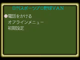 Nikkan Sports Pro Yakyuu VAN is a Sega Mega Drive cartridge developed and released by Sega exclusively in Japan. It uses the Sega Mega Modem and a subscription VAN service to display game action in real time, and to save games for later viewing. As such, it cannot be properly emulated yet. Nikkan Sports provided the service under the VAN name.