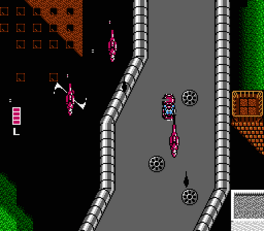 After Japanese video game developer Sunsoft ported Spy Hunter to the Nintendo Entertainment System, the company created Battle Formula with similar gameplay. Sunsoft America signed a deal with Bally Midway to release it outside Japan as Super Spy Hunter. The Super Spy Hunter has a super spy car. It's actually a well-armed car that can turn into a boat or a plane at opportune times. The action is fast vertical scrolling as the vehicle faces all manner of powerful vehicle threats from a well-funded terrorist enemy -- cars, trucks, helicopters, etc. Luckily, there are many powerups to collect along the way, both defensive and offensive.