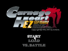 A mecha action-strategy game from Artdink. Carnage Heart EZ is an updated version of the Carnage Heart. Many of the OKEs have been rebalanced, and new features have been added including the ability to load programs from other save files (including from the original title). The difficulty of the campaign has also been increased for expert players.