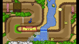 Moto Roader MC is a racing game by NCS and is the third episode of the Moto Roader series. Up to five players can race each other on twenty five tracks (five courses of five tracks each) as they vie for the first place. Unlike other games of the series, each track is constructed of a single static screen and is reminiscent of the arcade classic Super Sprint. Each race is made out of eight laps where anything goes! Cars are invincible and can fire an unlimited amount of rockets and bombs which, consequently, leads the gameplay more towards speed and attack. All the racing tracks display a showcase of exquisite themes - from classic "City" and "Nature" scapes to more elaborate designs such as the fantasy "Marchen" or the unique "Special" courses. Road hazards also spice up the game and make each play session unique - from classic pits, speed boosters to shortcuts and disorienting teleporters.